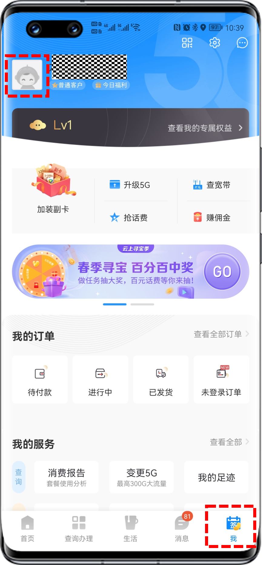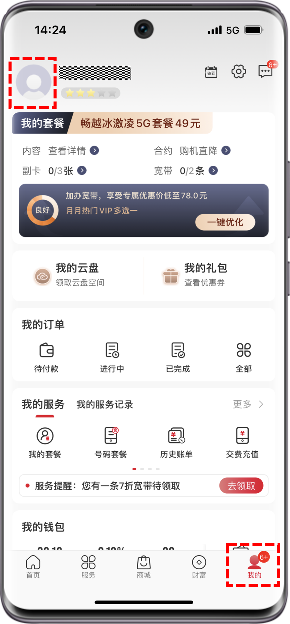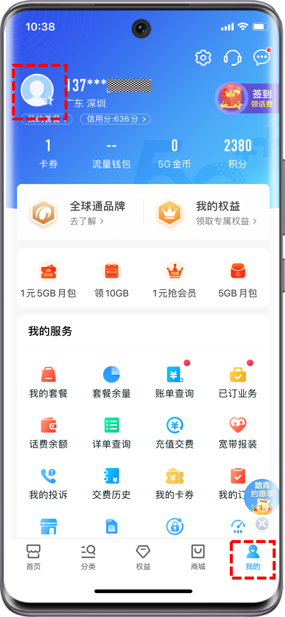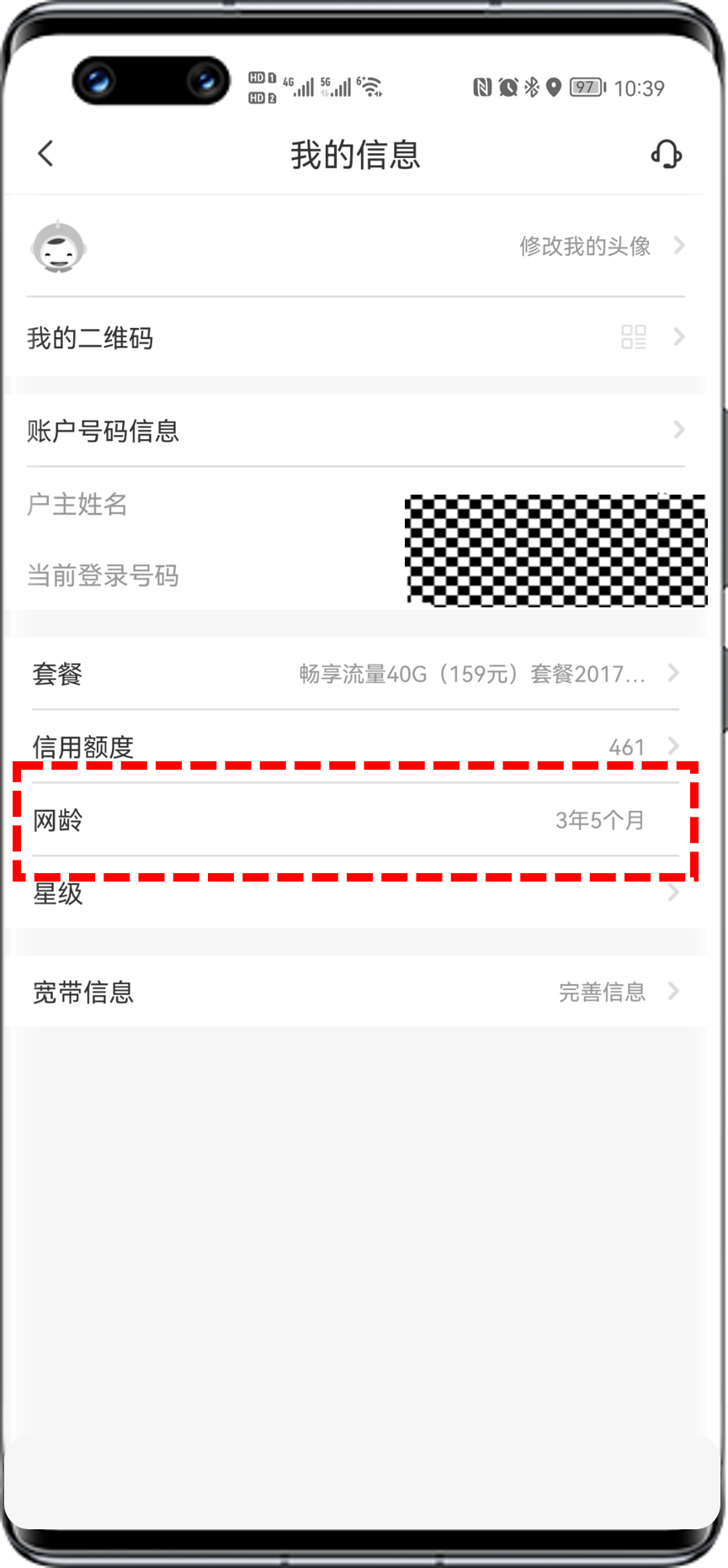 APP端:打开电信的营业厅App(中国电信App),点击我>头像,查看当前登录手机号和网龄。
