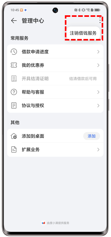 打开借钱服务>右上角>右上角>注销借钱服务>确认注销>下一步,根据页面提示操作完成注销。