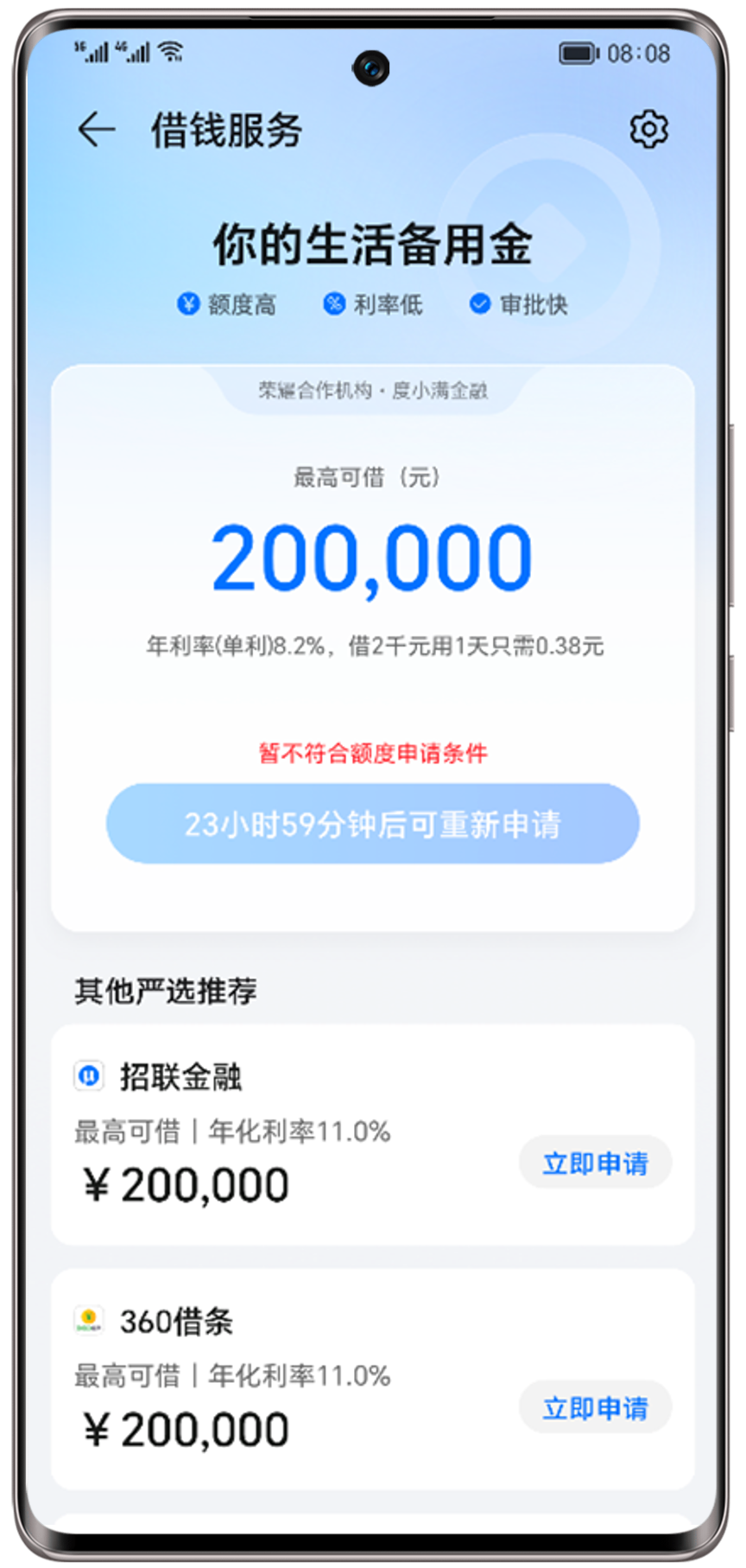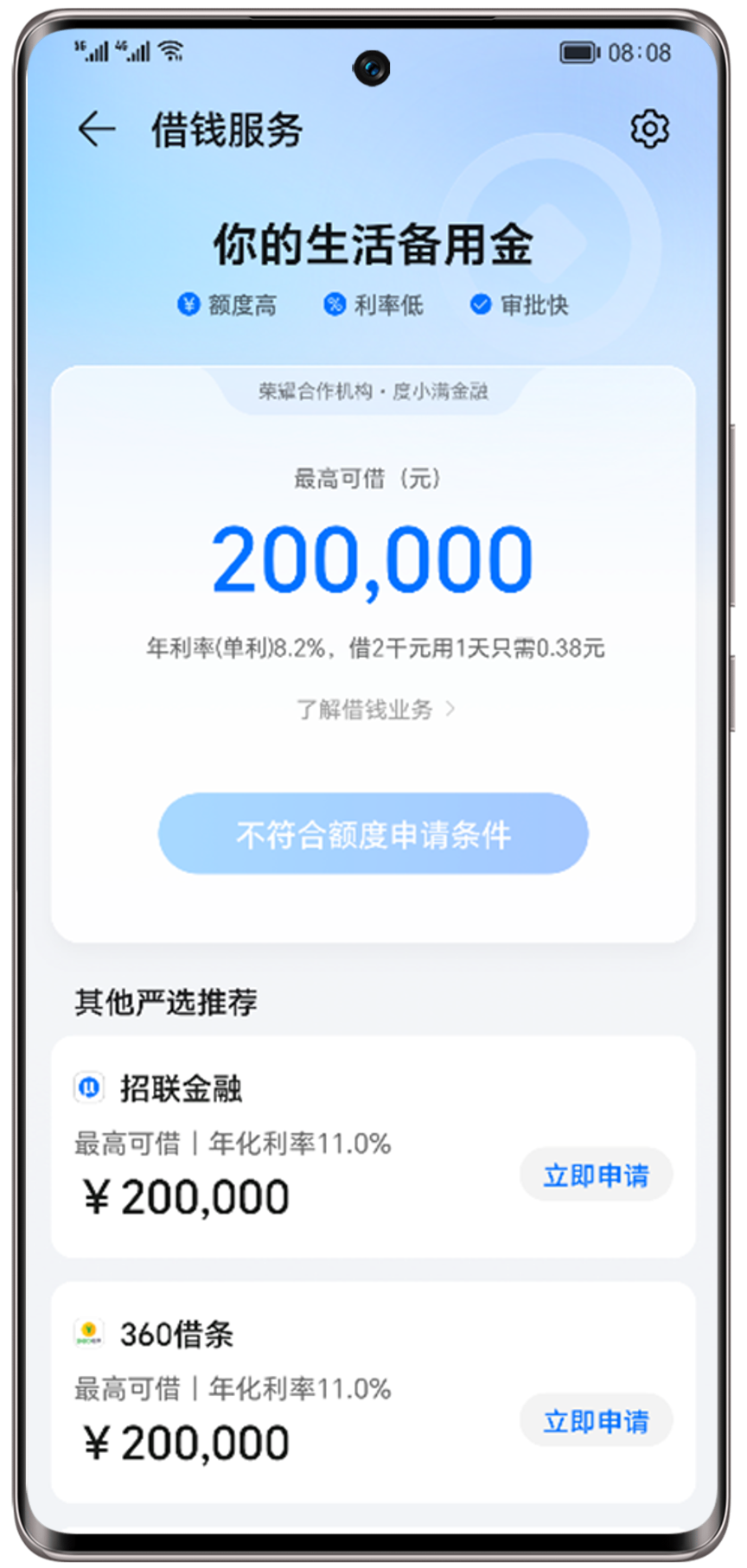 若您未申请过额度,无额度申请,即界面显示“申请额度”/“查看额度”;若您申请过额度,但未通过,即界面会显示不符合额度申请条件,这两种场景无需注销。